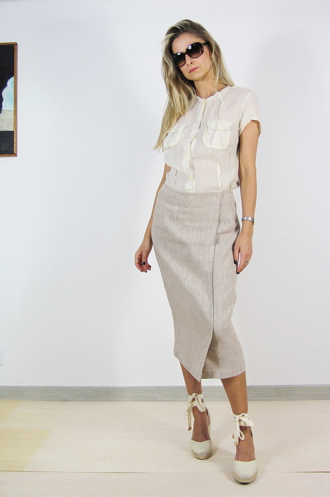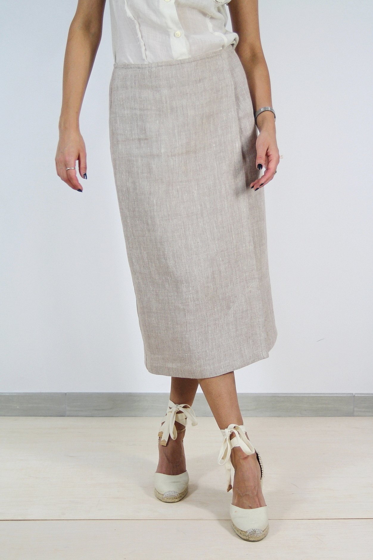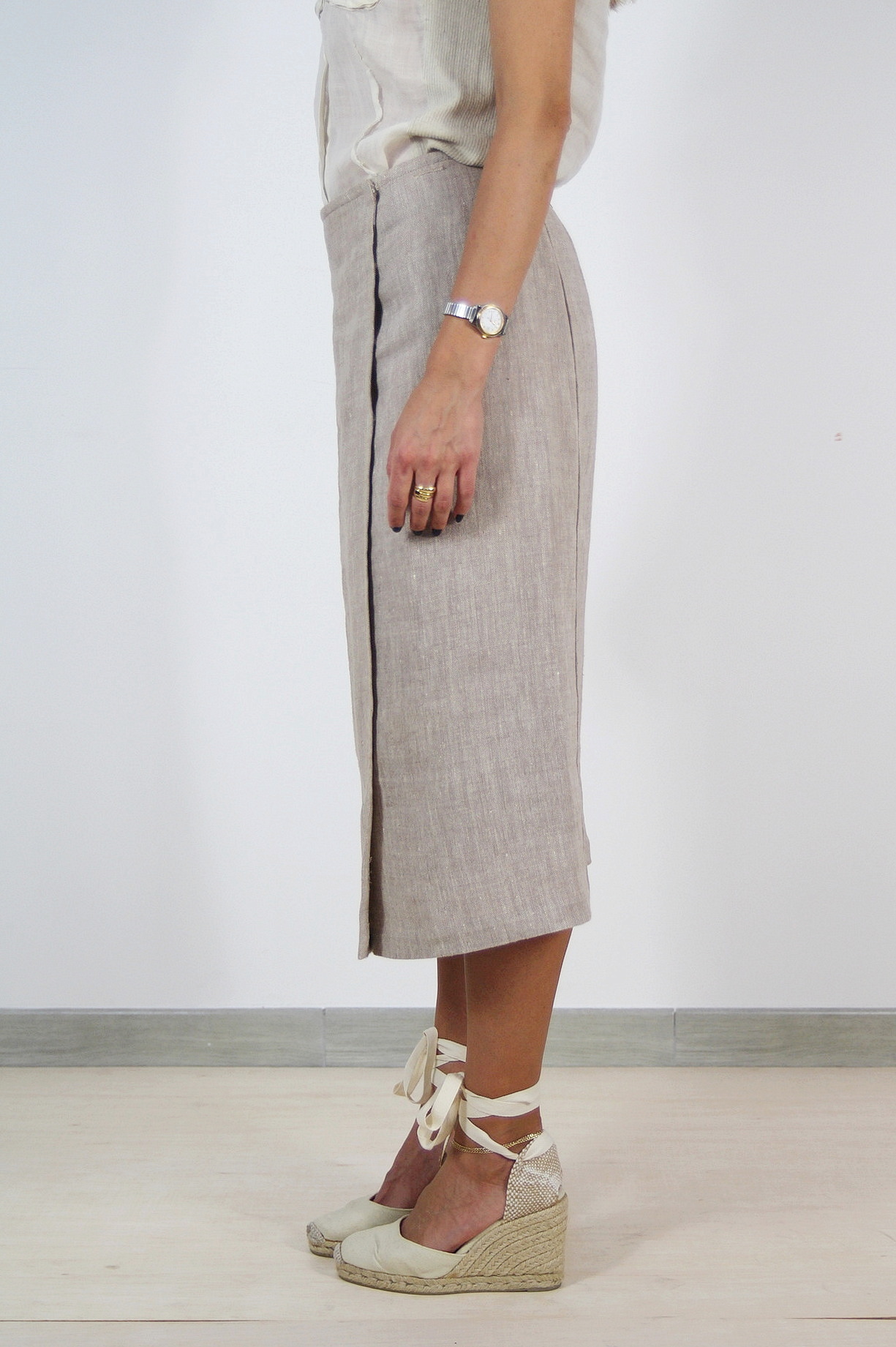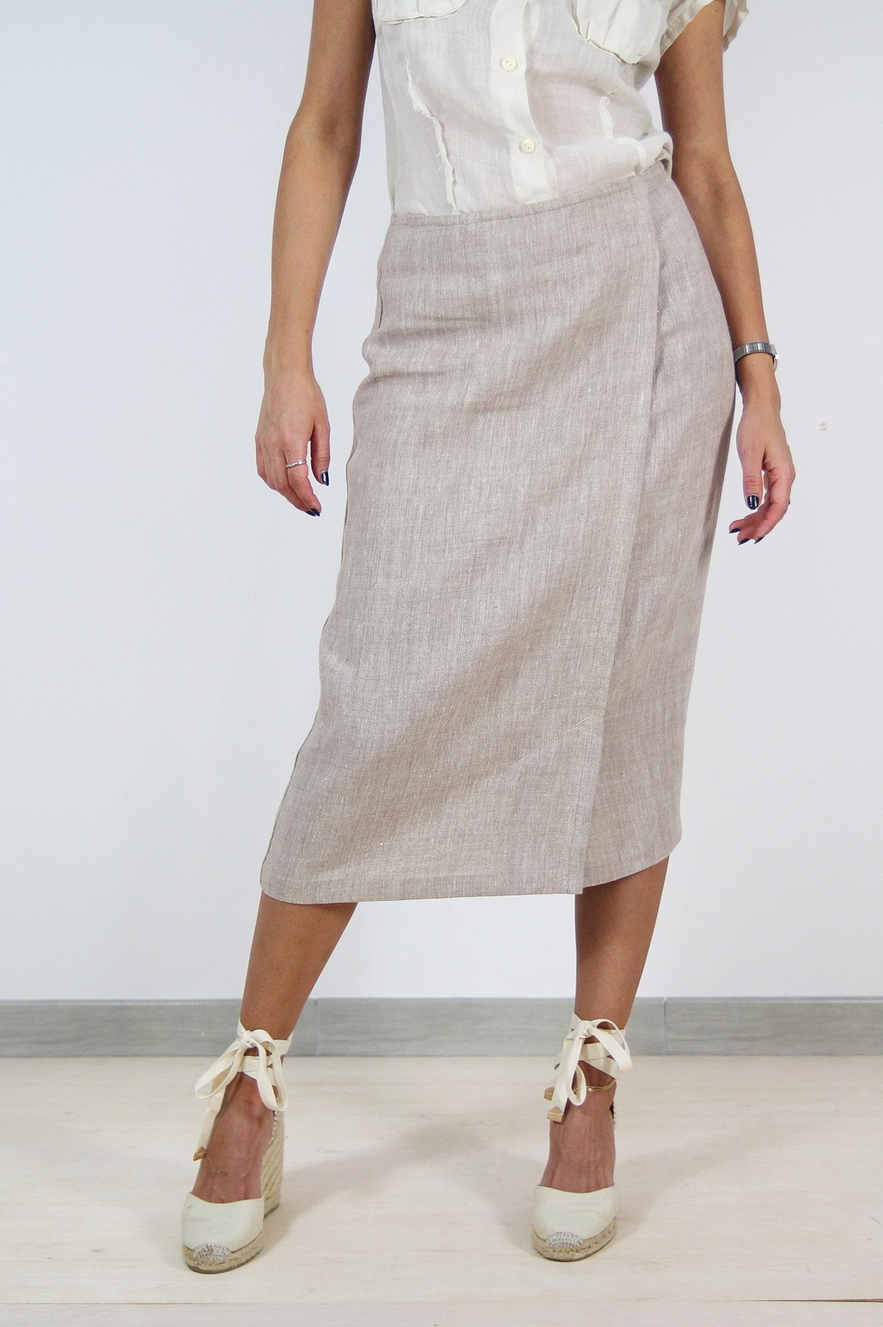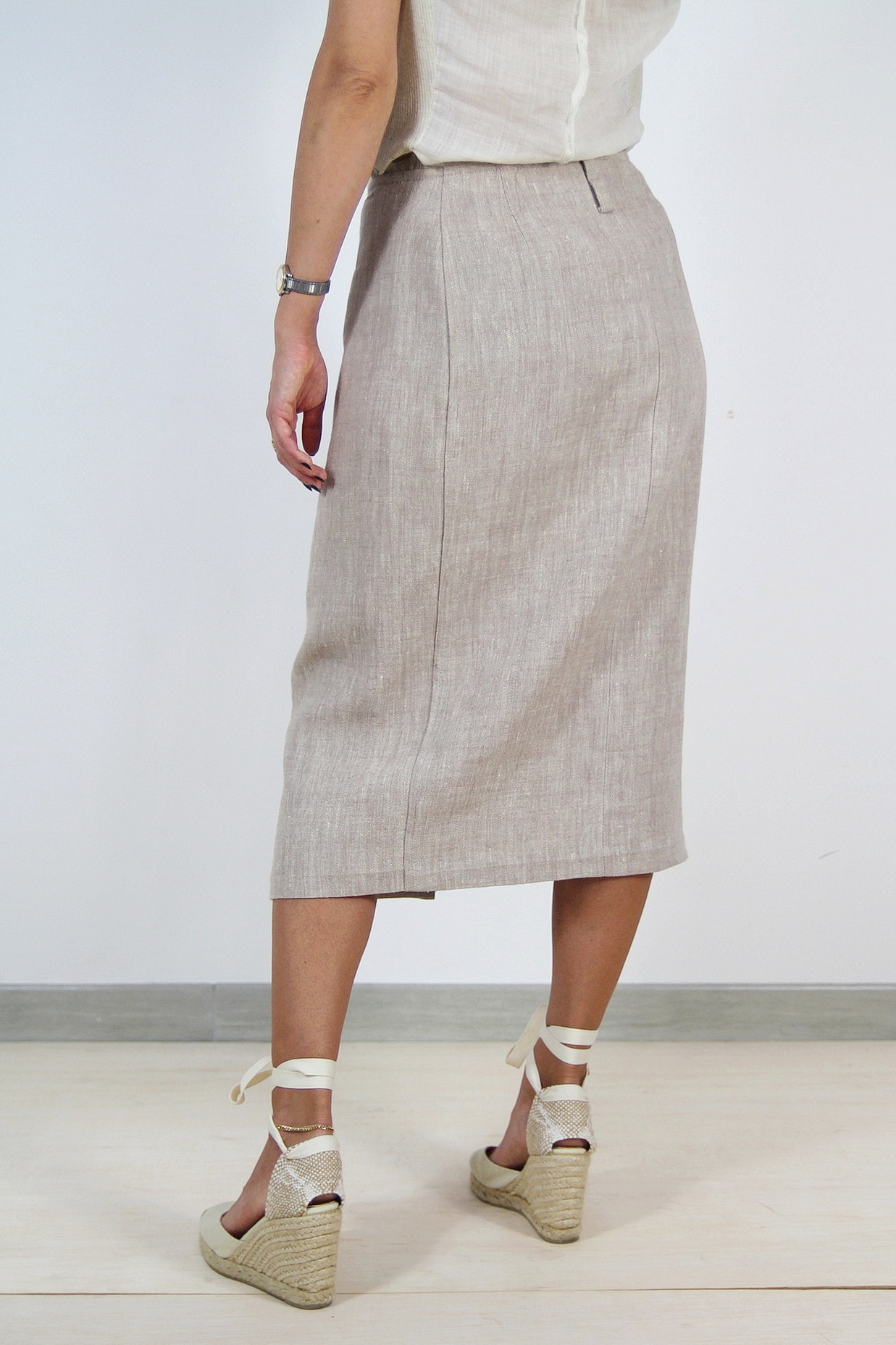 Fusta Max&Co pre-loved, conica, talie inalta, inchidere laterala parte peste parte cu capse ascunse.