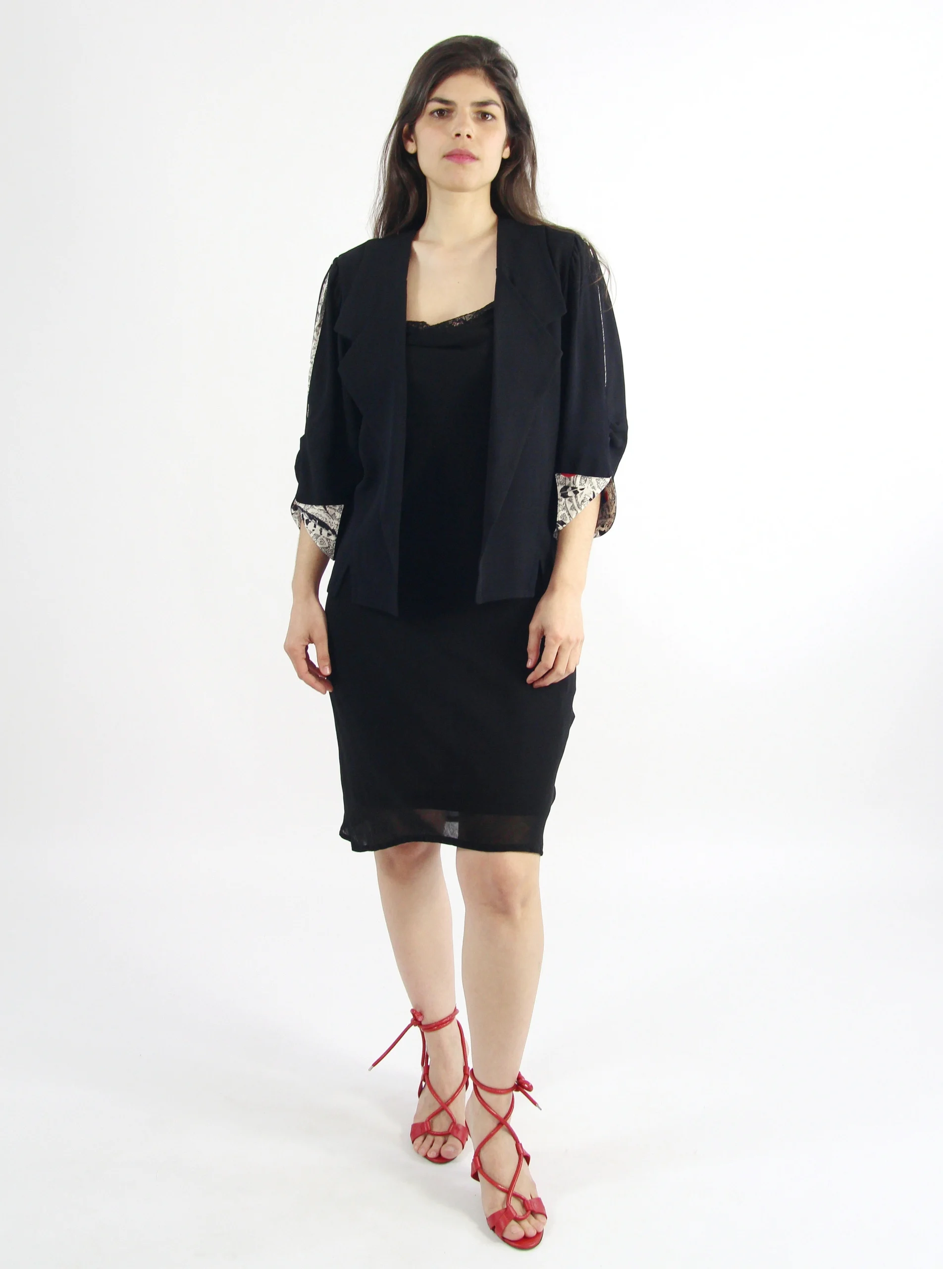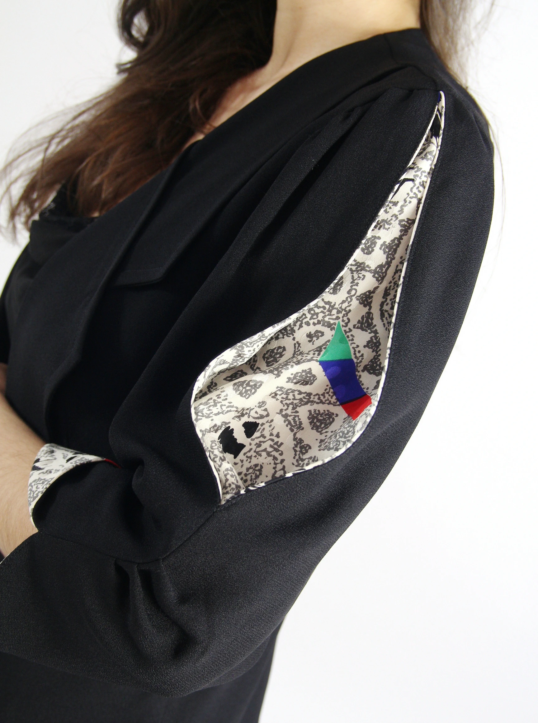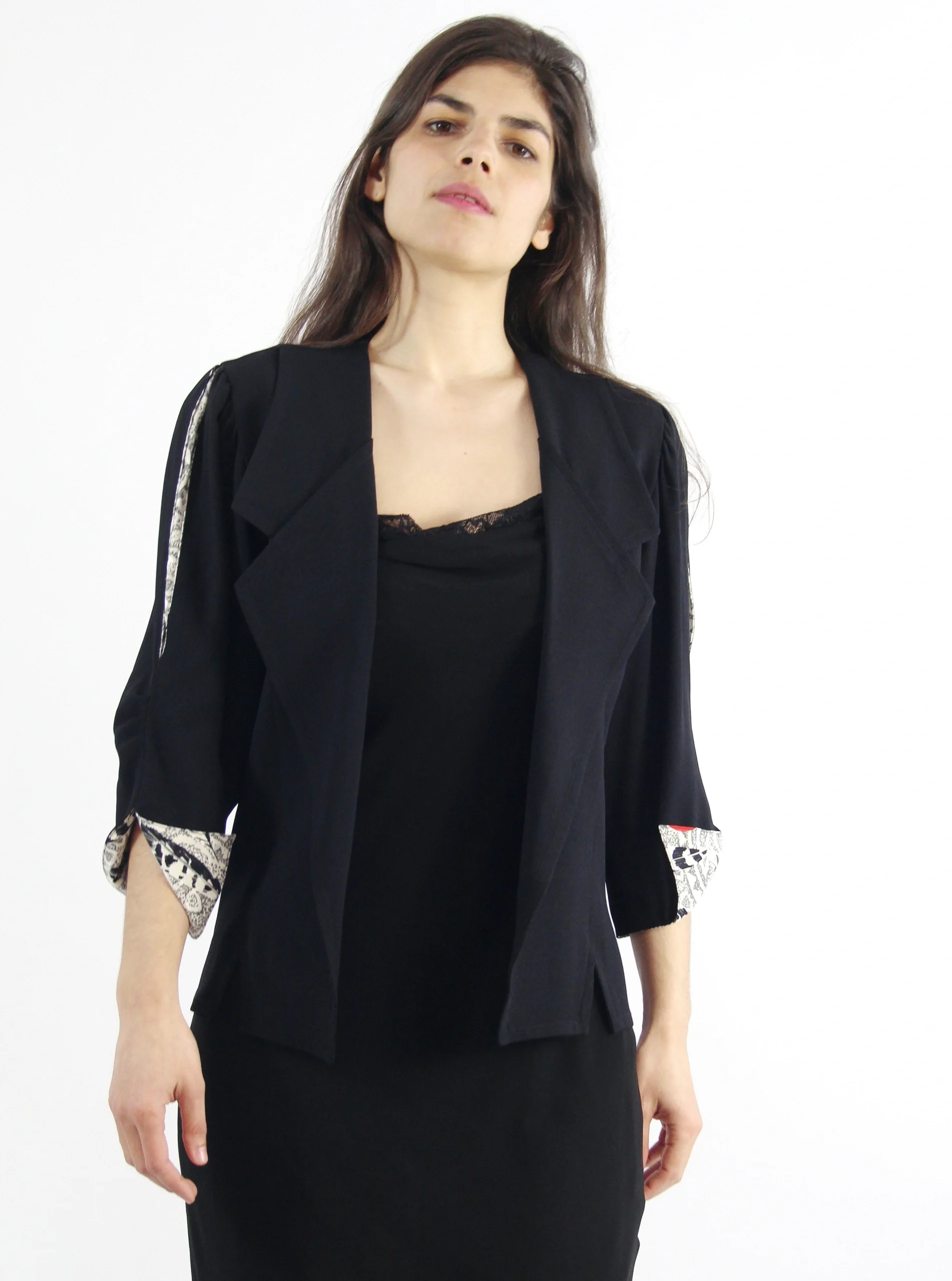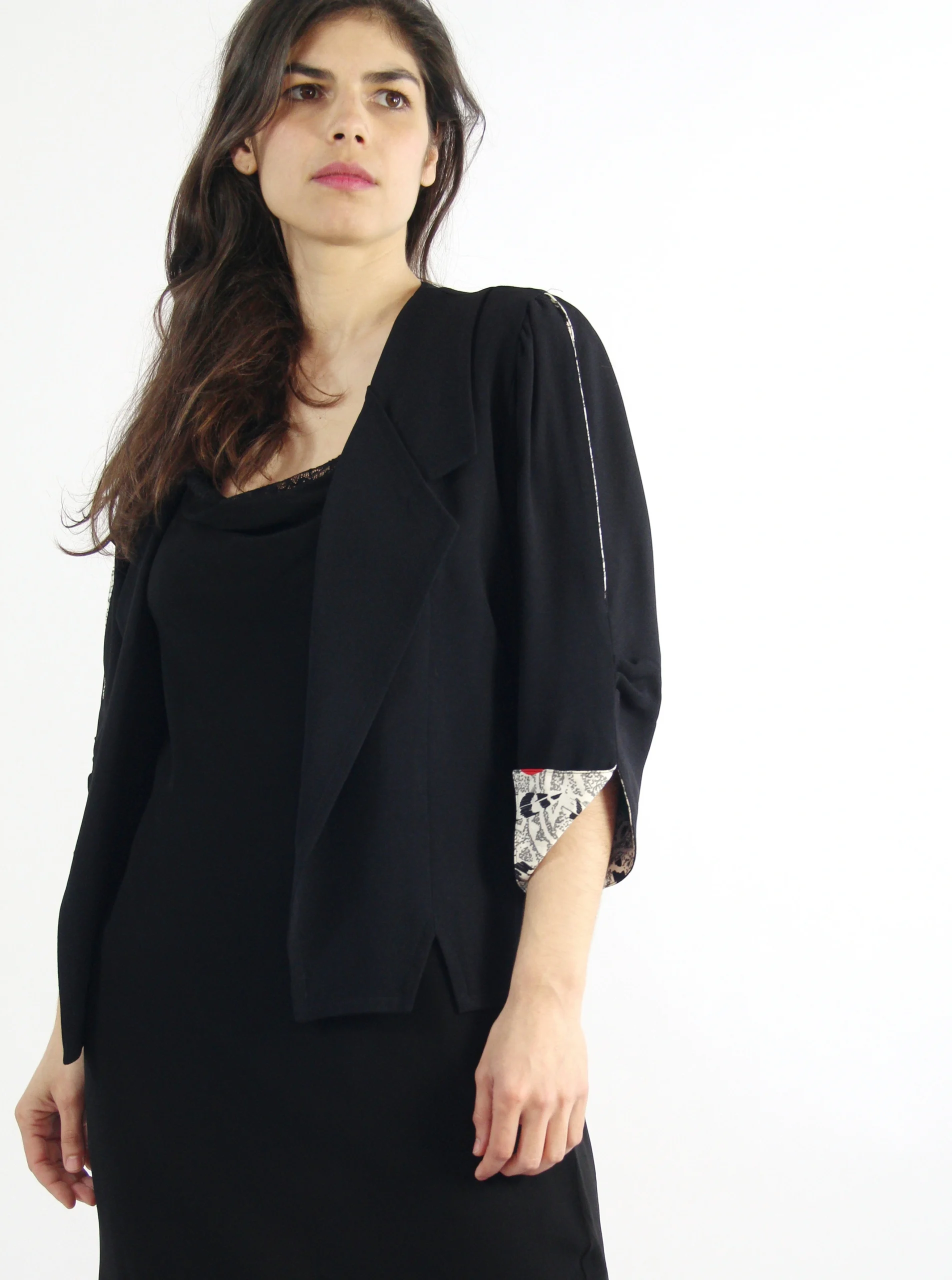 Sacou vintage Louis Feraud, croi lejer, cu rever alungit, maneca scurta cu volum, fara sistem de inchidere si fara dublura, inserții grafice ascunse pe interiorul mânecilor. Conditie impecabila.
