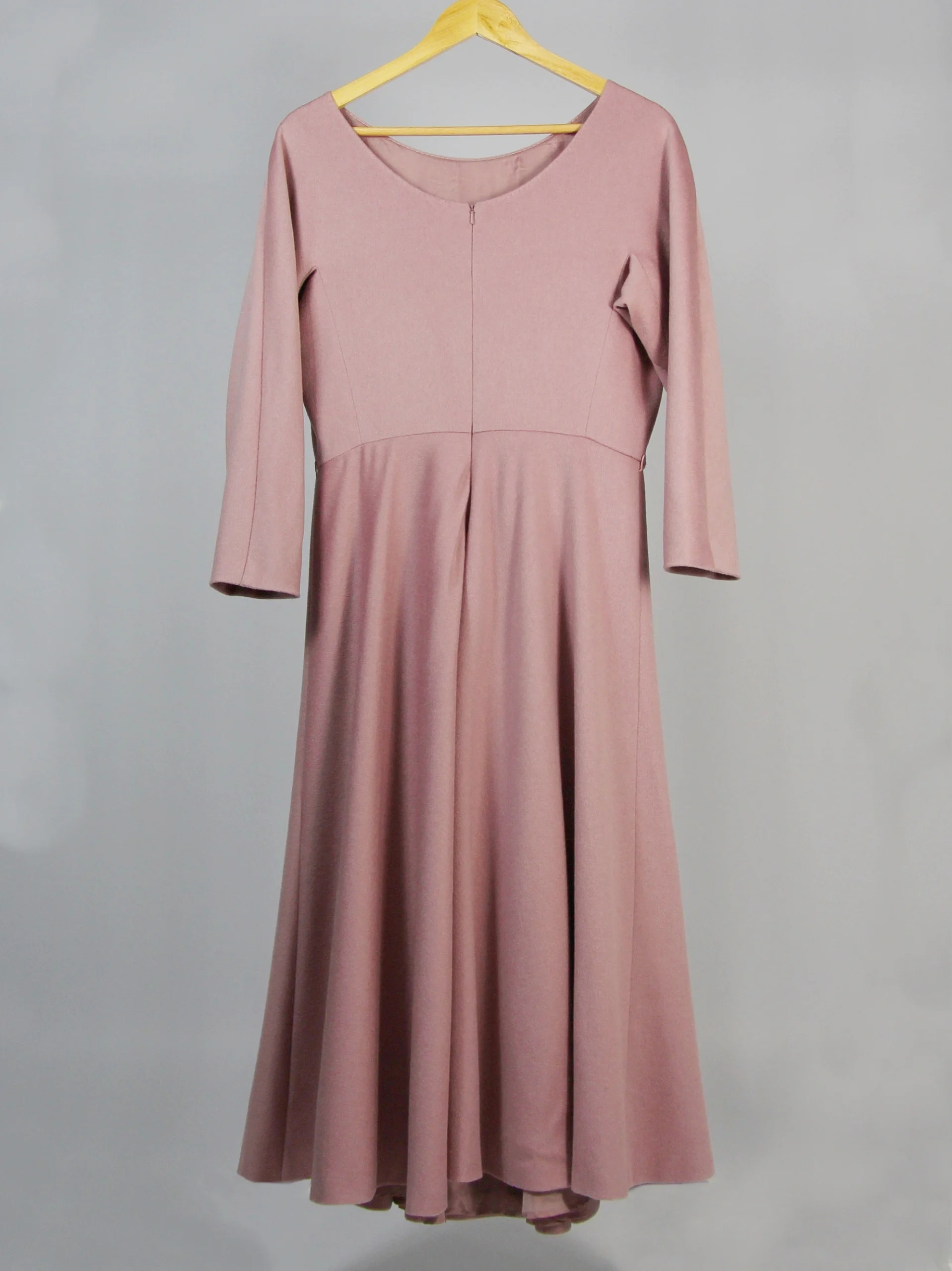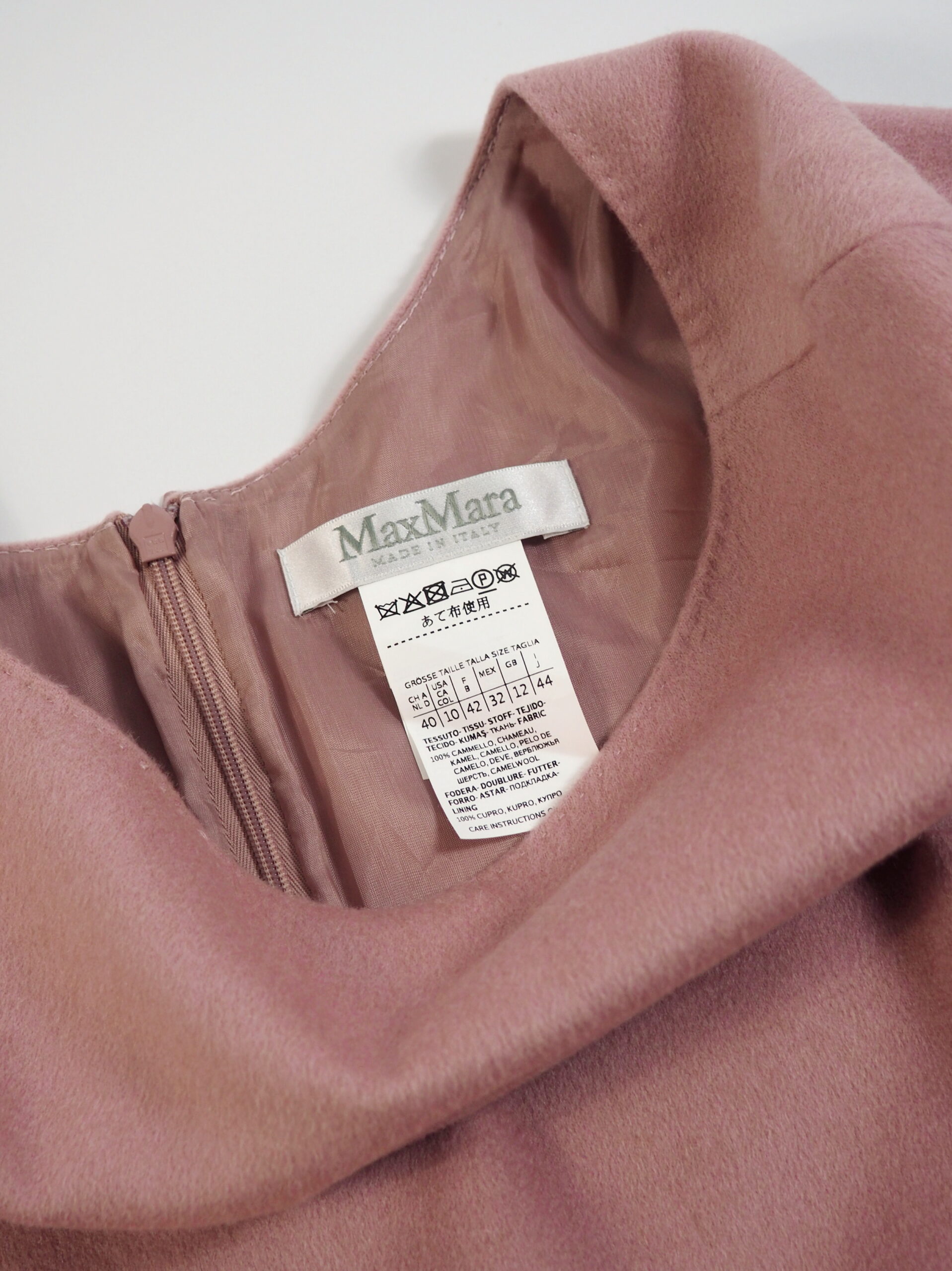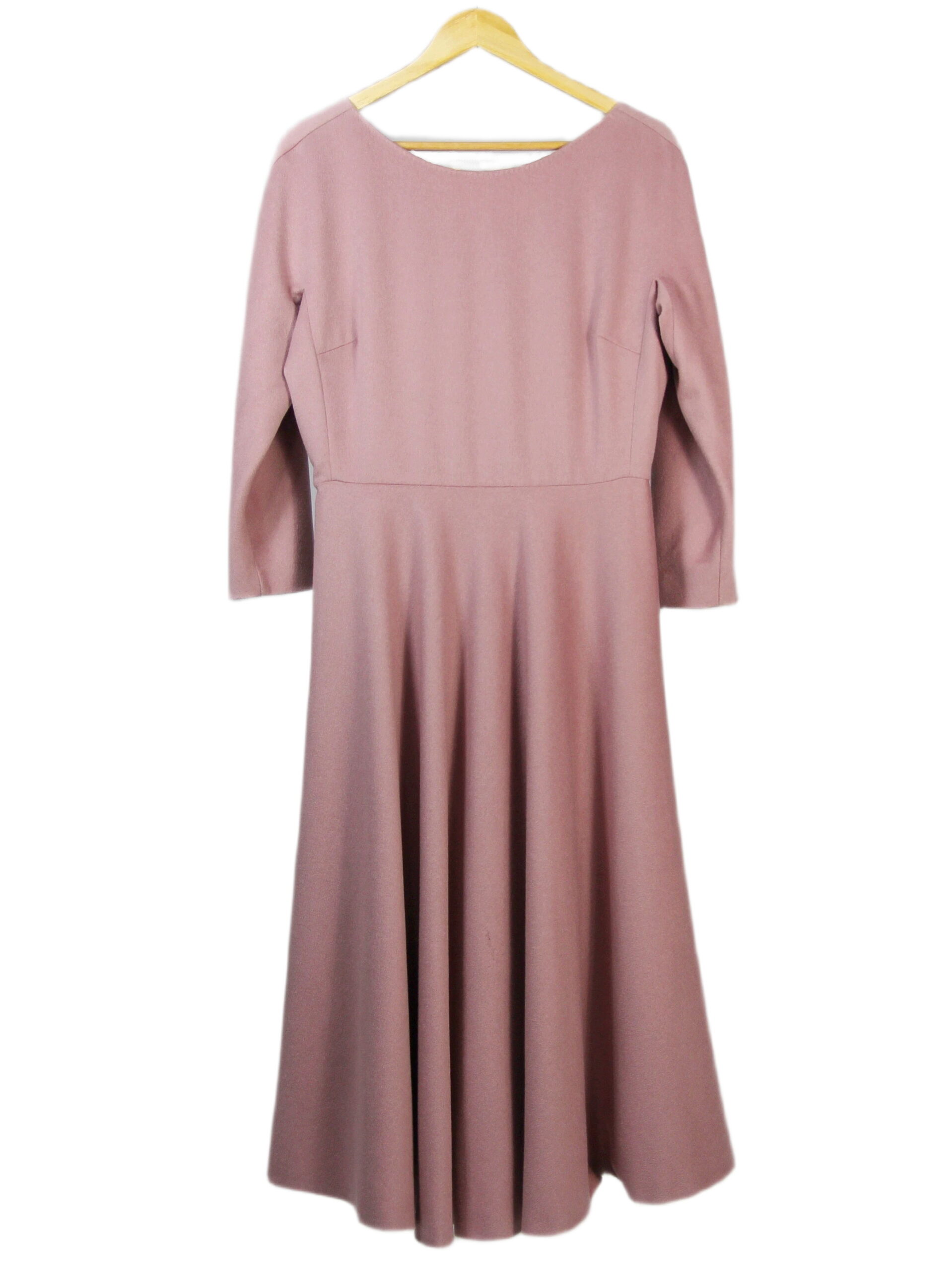Rochie Max Mara de lux din 100% camila, premium pre-loved. Croi feminin si elegant, talie marcata si fusta midi ampla cu cadere fluida, decolteu rotund si maneci trei sferturi, inchidere discreta cu fermoar la spate, captusita integral pentru confort, nuanta rafinata de roz pudrat. Material nobil cu textura fina si aspect sofisticat. Prezinta cateva urme fine de uyura specifica a materialului, vizibile doar la inspectie atenta, fara a afecta purtarea sau estetica generala.