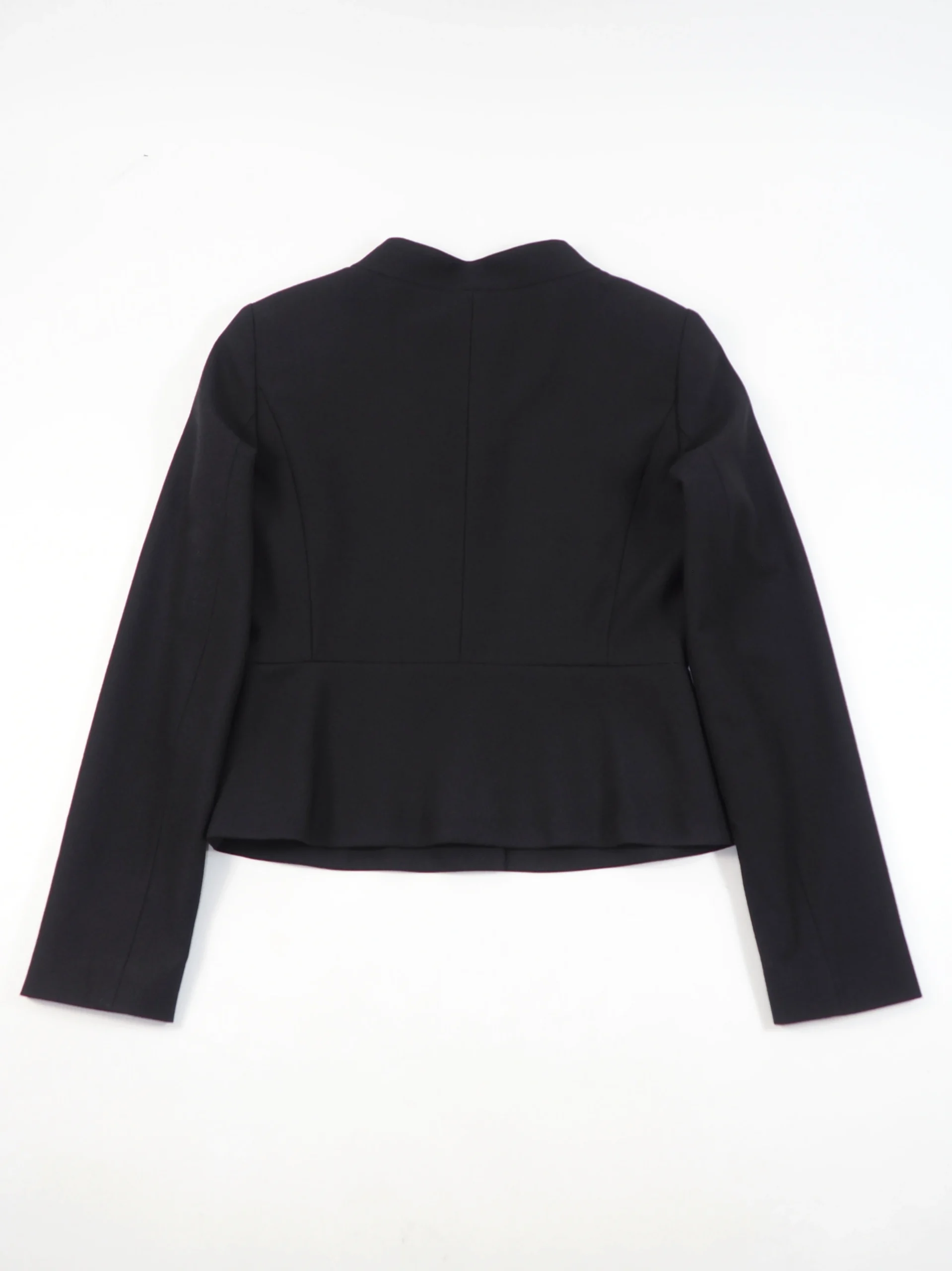 Sacou premiu Max&co structurat din lana fina, linie cambrata, guler rotund tip collarless si inchidere frontala cu nasturi, buzunare frontale si detalii curate, specifice brandului. Premium pre-loved in conditie impecabila.